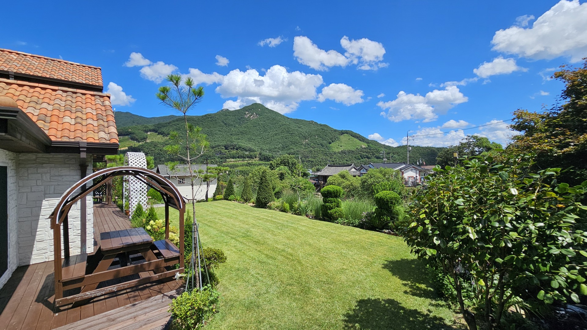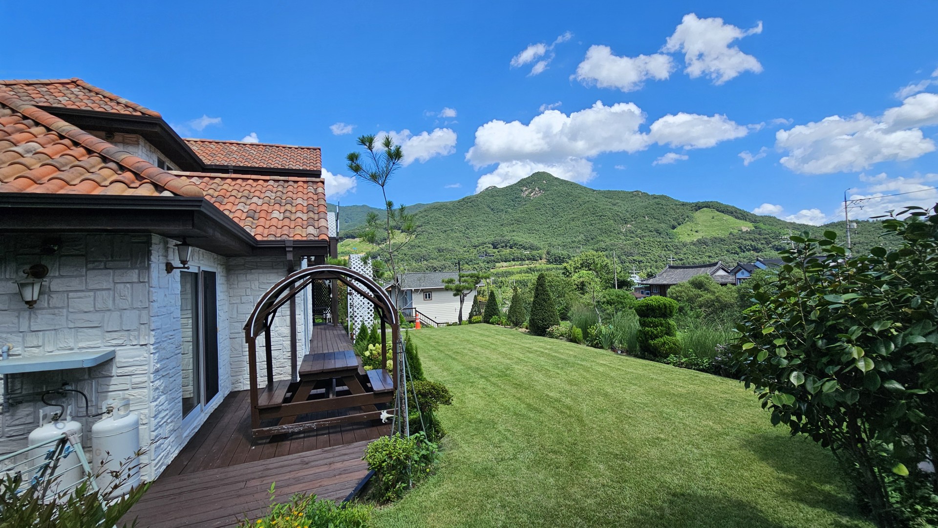 "산청작은정원펜션과 차로 5분거리에 위치하며 동네입구에 있습니다.